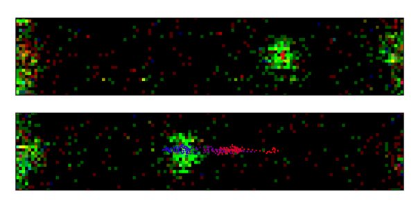 Single-molecule dynamics of ORC. Scanning confocal images of two ORC molecules, labelled in green, bound to dsDNA (not fluorescent). The dotted line connects fitted ORC positions over time (blue represents early times; red, late times). In the top panel, the ORC is static throughout the entire observation time bound to the origin of DNA replication. In the bottom panel, another ORC diffuses randomly from its initial position until it locates the origin.