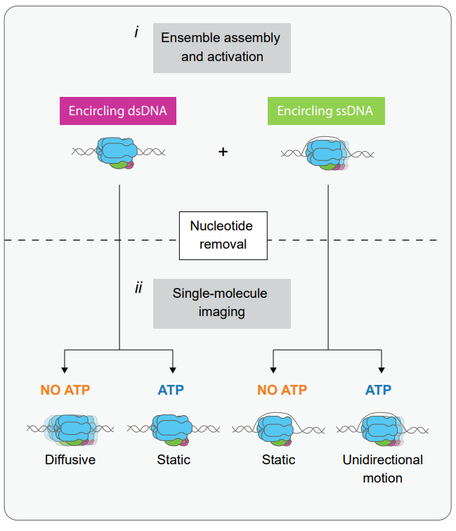 We have recently published our findings about the dynamics of the loading proteins involved in the first step of replisome assembly. The origin recognition complex (ORC) turns out to be a protein that is quite mobile on the DNA, except at the origin. Recruitment of the MCM helicase in an ORC-dependent manner can occur at different locations on the DNA, but immobile ORC-MCM complexes are also preferentially observed at the origin. When loaded onto DNA in the presence of ATP in bulk experiments and then visualized at the single-molecule level, both single and double Mcm2-7 hexamers are found on the DNA, and both exhibit similar low-level mobility. Read more about these findings here.